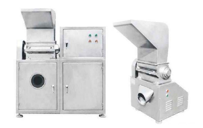 工作原理:物料由進料斗送進粉碎室,經(jīng)刀刃和刀挫的沖擊,旋轉(zhuǎn)刀和固定刀同時剪切粉碎,由于受到旋轉(zhuǎn)離心力的作用,物料自動從出口處流出。