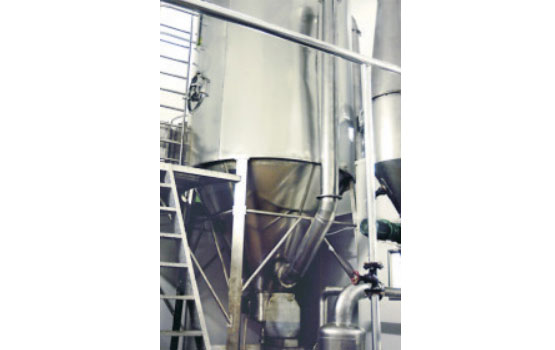 該機采用全封閉形式,所有部件均采用不銹鋼制造,配有三級凈化裝置,過濾后的空氣達十萬級要求 。簡體與頂部裝有冷壁裝置,使壁溫<80℃,物料在壁上停留也不焦化變質現(xiàn)象,大大增加了收粉率(達95%以上),而且不會產生混藥現(xiàn)象和粘壁現(xiàn)象。