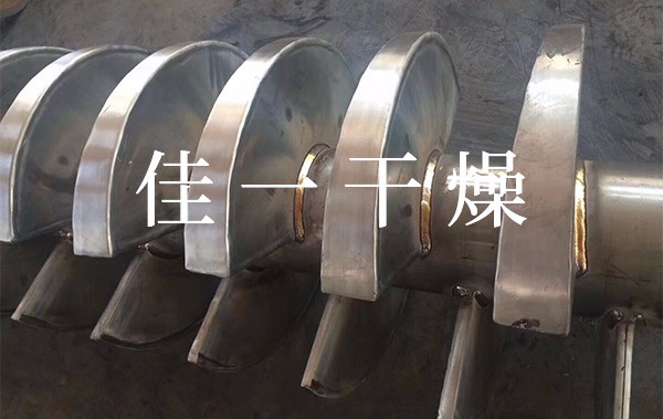 空心軸上密集排列著楔型中空漿葉,熱介質(zhì)經(jīng)空心軸流經(jīng)漿葉。單位有效容積內(nèi)傳熱面積很大,熱介質(zhì)溫度從-40℃到320℃,可以是水蒸汽,也可以是液體型:如熱水、導(dǎo)熱油等。間接傳導(dǎo)加熱,沒有攜帶空氣帶走熱量,熱量均用來加熱物料。熱量損失僅為通過器體保溫層向環(huán)境的散熱。楔型漿葉傳熱面具有自清潔功能。物料顆粒與楔型面的相對運動產(chǎn)生洗刷作用,能夠洗刷掉楔型面上附著物料,使運轉(zhuǎn)中一直保持著清潔的傳熱面。漿葉干燥機的殼體為Ω型,殼體內(nèi)一般安排二到四根空心攪拌軸。殼體有密封端蓋與上蓋,防止物料粉塵外泄而充分發(fā)揮作用。
