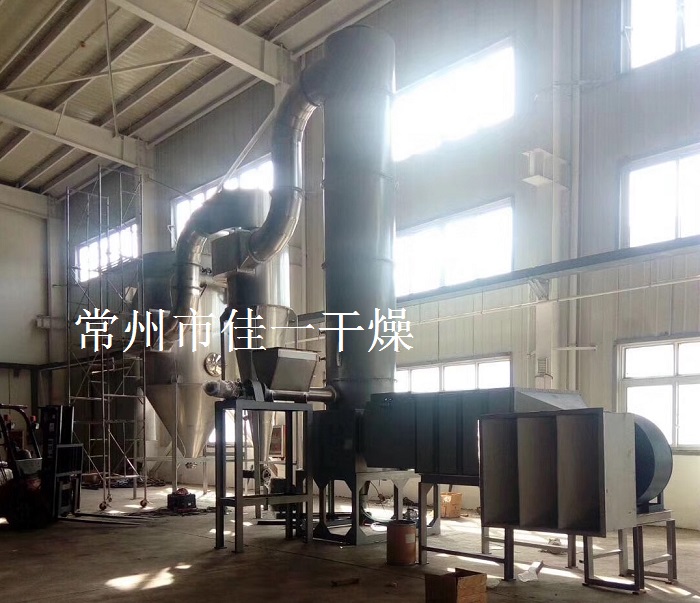 1、原理:旋轉(zhuǎn)閃蒸干燥機(jī)在研制的過(guò)程中其著眼點(diǎn)是很好地增加其分散度,即增加單位體積濕料中的表面積,加速傳熱和傳質(zhì)過(guò)程。所需空氣通過(guò)空氣過(guò)濾器凈化,經(jīng)鼓風(fēng)機(jī)送至加熱器加熱后,由底部環(huán)縫隙切線進(jìn)入攪拌粉碎干燥室,產(chǎn)生螺旋上升氣流;濕物料裝入攪拌分散罐里混合,分散均勻后,經(jīng)螺旋加料器連續(xù)定量地加入干燥機(jī)中,干燥的干品隨同熱空氣自干燥機(jī)上部出口管帶出機(jī)外,通過(guò)旋風(fēng)除塵器和布袋除塵器,將干品粉粒收集到料倉(cāng)中...